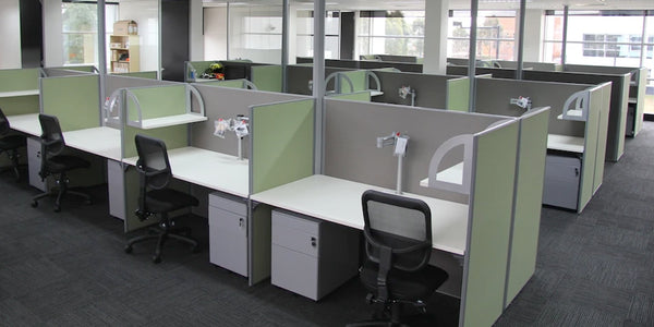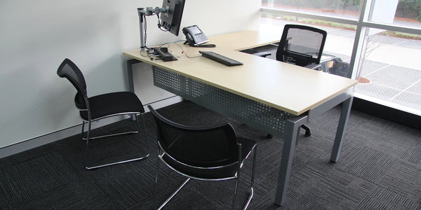 We were required to design a good value, maximum privacy and noise reduction setup. Management offices required a small amount of closed storage and open office storage.