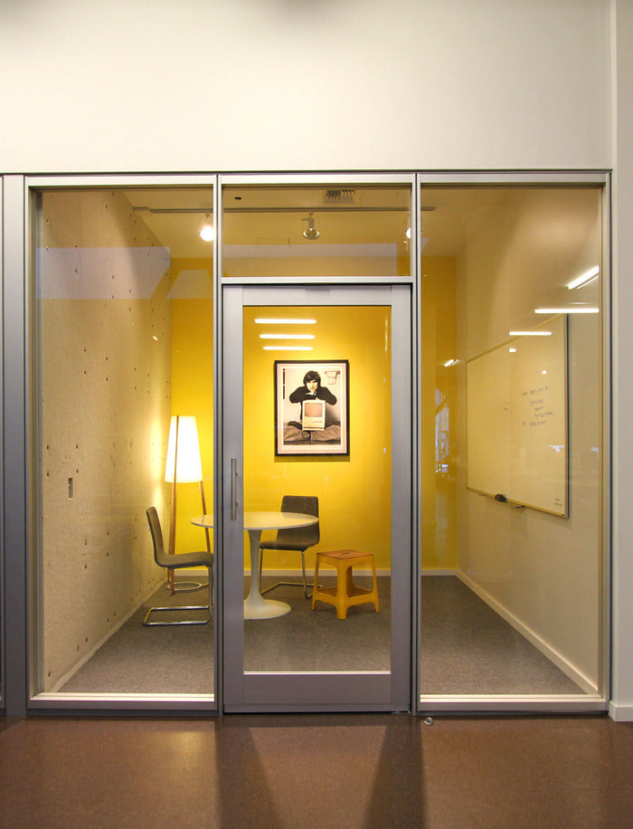 For added functionality, entire walls in meeting areas are covered in magnetic whiteboard or chalkboard paint, ensuring ideas are captured and thoughts can be organized.